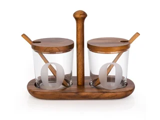 2 ظرف شیشه ای با دَرهای چوبی