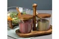 درِ ظرف، قاشق و سینی از جنس چوب درخت اقاقیا با روکش لاک چینی (Lacquer)