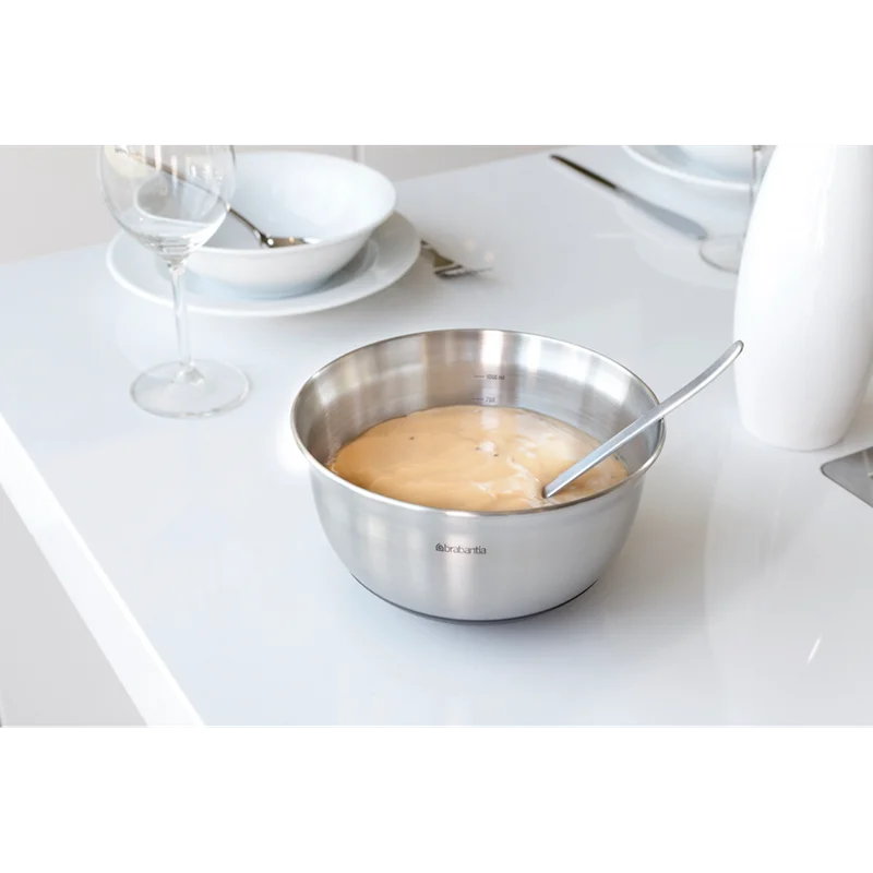چه چیزی از این بهتر که داخل یک کاسه هم بتوانید هم بزنید و هم مخلوط کنید. با کاسه میکس استیل 1 لیتر برابانتیا ساخته شده از فولاد ضد زنگ، توانایی آشپزی خود را بالا ببرید. این کاسه با داشتن درجه اندازهگیری در داخل، ترکیب مواد را آسان میکند. لبه خمیده کاسه میکس استیل 1 لیتر برابانتیا برای نگه داشتن کاسه در موقعیت مناسب طراحی شده است و پایه سیلیکونی آن از لیز خوردن کاسه جلوگیری می کند. این کاسه تا دمای 220 درجه سانتیگراد در برابر حرارت مقاوم است.