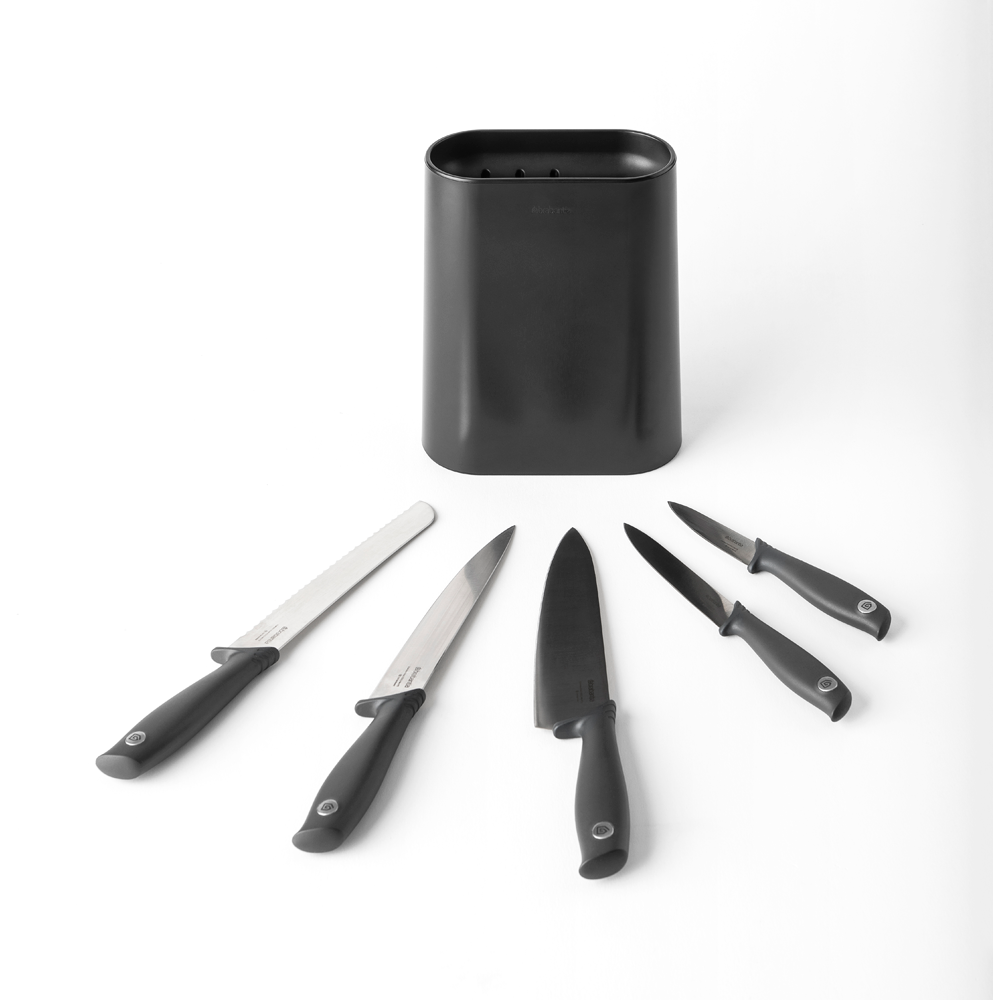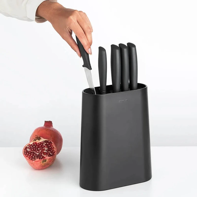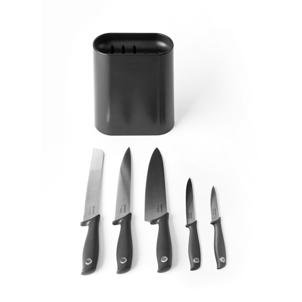 سرویس چاقو های Brabantia با بالاترین و مجهز ترین تکنولوژی ساخته شده اند که به این دلیل در نوع خود بی نظیر هستند . تیغه های آن از استیل 18/10 و استند زیبای آن ساخته شده ازمواد بازیافتی می باشد که به محیط زیست آسیب نرساند . این مدل سرویس چاقو مدل Brabantia Knife Block plus Knives که شامل چهار عدد چاقو و یک عدد چاقو برش نان و یک استند می باشد که می توان از آن ها برای بریدن نان ، بریدن گوشت ، بریدن سبزیجات ، بریدن استیک استفاده نمود . از ویژگی های بسیار مهم چاقو های بارابانتیا میتوان تیغه های تیز آن و مقاومت بالا در برابر خط و خش اشاره کرد .