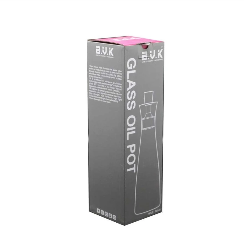 ظرف روغن بی وی کی (B.V.K) با گنجایش ۵۰۰ میلیلیتر از جنس پیرکس (شیشه بروسیلیکات) با کیفیت و مقاوم در برابر تغییرات دما ساخته شده است. این محصول با بدنه شفاف و طراحی مدرن، امکان مشاهده میزان باقیمانده روغن یا سرکه را به راحتی فراهم میکند. درب و خروجی این ظرف بهگونهای طراحی شده که از چکیدن روغن جلوگیری کرده و کنترل دقیقی هنگام ریختن مایعات دارد و به علت ساختار خاص درب آن بعد از استفاده به هیچ عنوان دور ظرف آغشته به روغن نخواهد شد. این ظرف به دلیل متریال بهداشتی و ظاهر ساده و شکیل، انتخابی ایدهآل برای نظمبخشی به فضای آشپزخانه و استفاده مستقیم بر سر میز پذیرایی است.