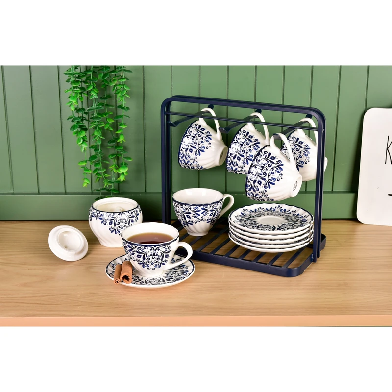 ست فنجان نعلبکی بی وی کی طرح آترین کد 475550 به همراه استند دارای طراحی زیبا و مدرن می باشد. جنس بدنه فنجان و نعلبکی از جنس چینی می باشد .این محصول مناسب برای سرو و پذیرایی و آشپزخانه می باشد.این محصول دارای 1 عدد قندان نیز می باشد .ظرف چینی قابل شستشو در ماشین ظرفشویی می باشد. -از قراردادن ظرف فلزی در ماشین ظرفشویی خودداری نمایید.